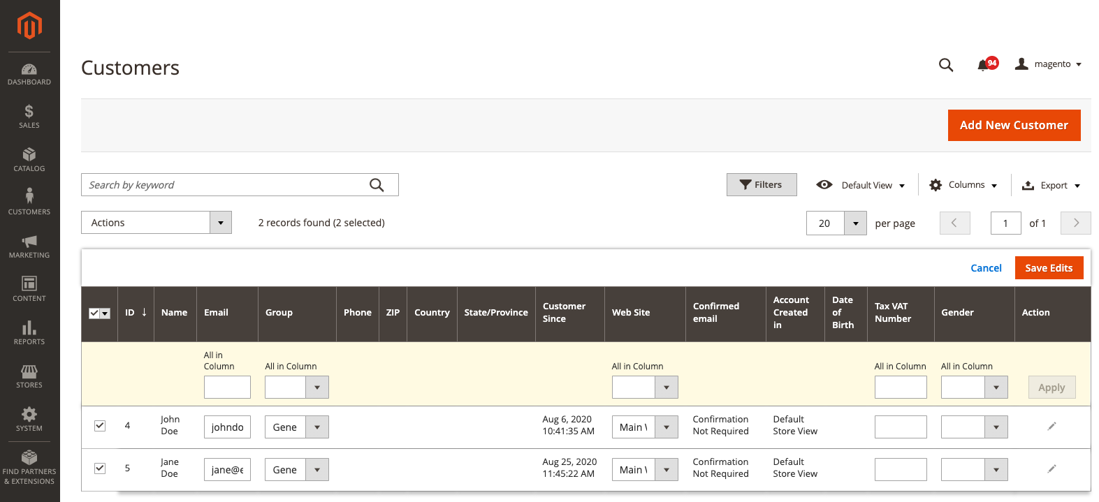 Magento’s bulk editing capabilities extend to customer data management, allowing you to add, update, replace, and manage customer information and addresses efficiently.
