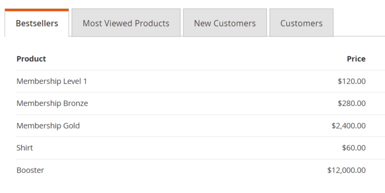 Gain valuable insights into product performance with Magento’s reports on product views, bestsellers, low stock, and downloads.